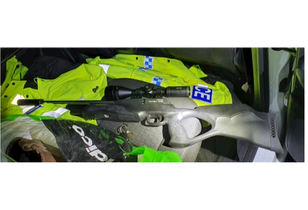 In the early hours of this morning, officers from your local Neighbourhood Policing Team on routine patrol along the A44 near Stow-on-the-Wold observed a vehicle behaving unusually after being passed by the police car. The vehicle came to a sudden stop and activated its hazard lights, prompting concerns that it had broken down. Officers turned back to check on the vehicle and upon speaking to the driver, officers noticed an air rifle in the passenger foot well. The driver stated that they and the two passengers were out attempting to shoot pheasants.